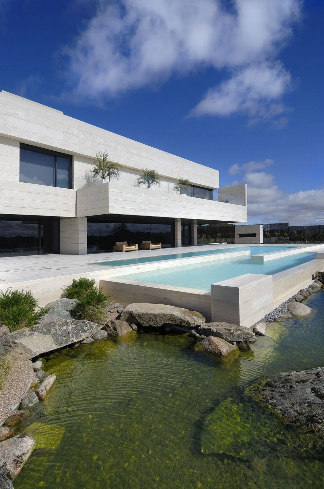 /December 8, 2013 by Thomas DeVoss adesignhub: Love, love, love the contrast of the natural green lake and crisp blue pool water xo Source: http://magnificent-mansions.com/