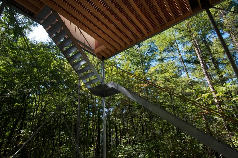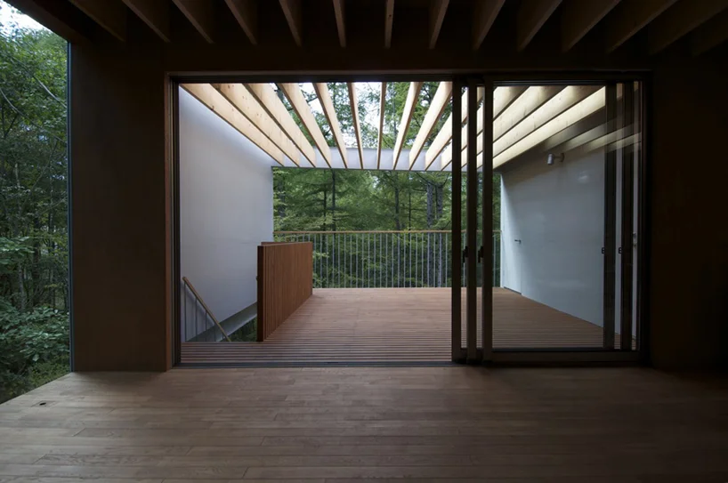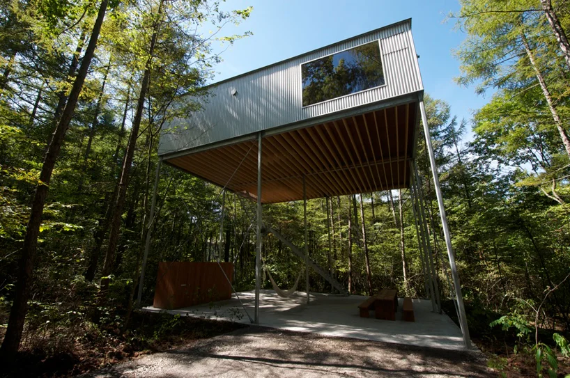 “japanese studio go hasegawa has designed ‘pilotis in a forest’, a weekend house located three hours outside of tokyo, japan. situated among a forest of mature trees, the structure aims to co-exist with the natural landscape that surrounds it. ”