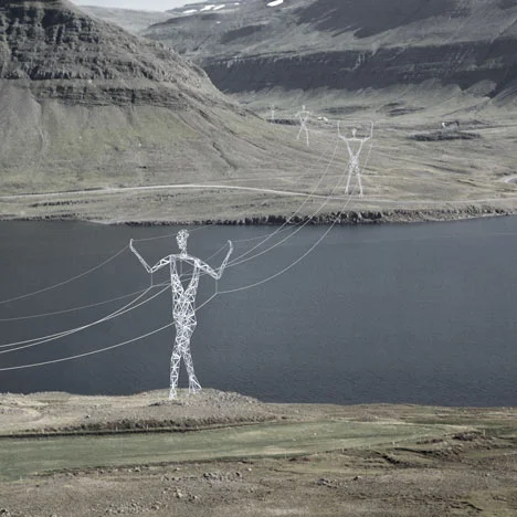 “American firm Choi + Shine Architects designed these conceptual electricity pylons shaped like human figures to march across the Icelandic landscape.”