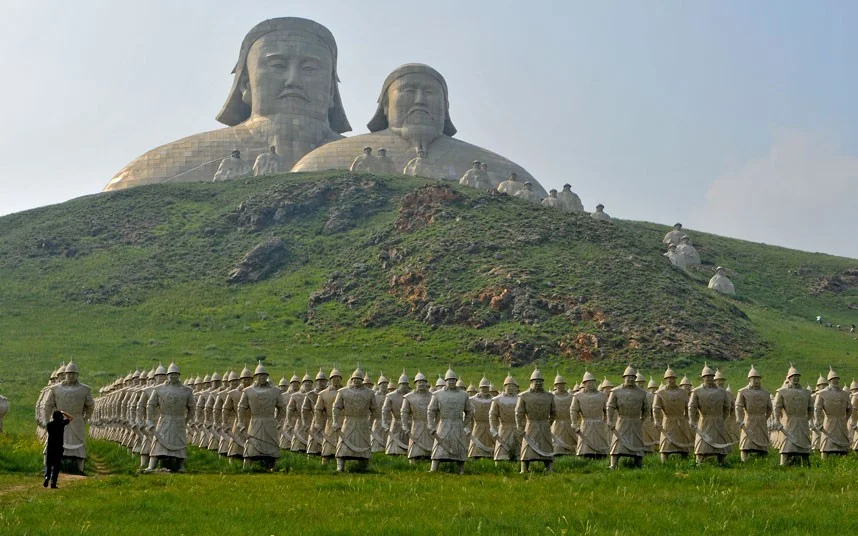 /January 21, 2013 by Thomas DeVoss architectureofdoom: Terracotta Mongolian Warriors and a statue of Genghis Khan are seen at the recently completed Mount Khan tourist attraction in Holingol, Inner Mongolia, China. Source: http://www.world-insights.com/statue-of-ge...