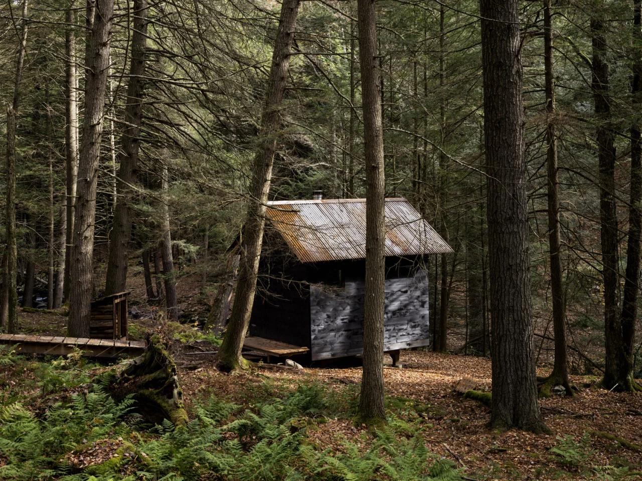 Sauna built by the Beaver Brook School, clad with pine boards, coated with pine tar, roofed with steel.