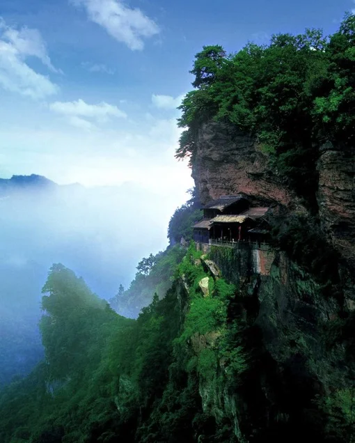 Nanyan Temple in the Wudang Mountains of China, created entirely out of rock, c. 7th century