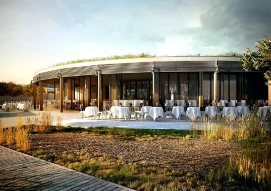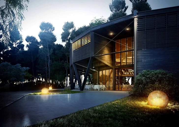 /November 24, 2011 by Thomas DeVoss gordonyung: La Rive’s Timber Theater & Green Roofed Restaurant / Nadau Lavergne Source: http://arkitekcher.tumblr.com/post/1318596...
