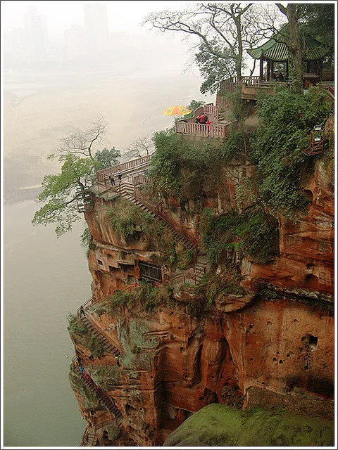 /April 19, 2011 by Thomas DeVoss katombo: grand buddha_hillside (by Faqiang Wu) plank road built along a cliff in the Grand Buddha scenic spot Source: http://www.flickr.com/photos/canarywu/3845...