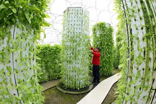 In this dome-shaped greenhouse, 100,000 cultivated vegetables grow without soil. It’s estimated that the vegetable yield in the greenhouse will be 16 times more than the traditional planting method.