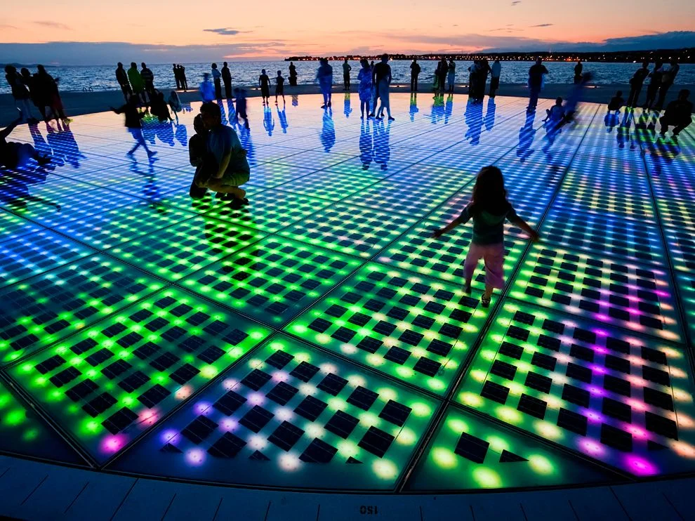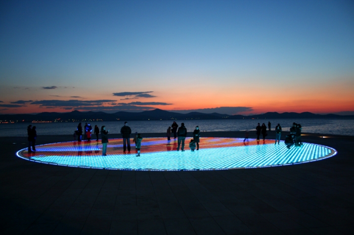 This public art installation by Croatian architect Nikola Bašić comes to life at sunset in the beautiful coastal town of Zadar, Croatia. This circle of light consists of 300 photovoltaic solar glass plates installed on the stone-paved waterfront, next to his famous oceanic-musical instrument, the Sea Organ. The LED’s change colour and pattern to create a spectacular show of light to the rhythm of the waves and the sounds of the Sea Organ. It produces enough energy to be used not only for the installation, but for the lighting of the entire waterfront. The project is a unique example of implementing the use of renewable energy sources and energy efficiency in the city space.