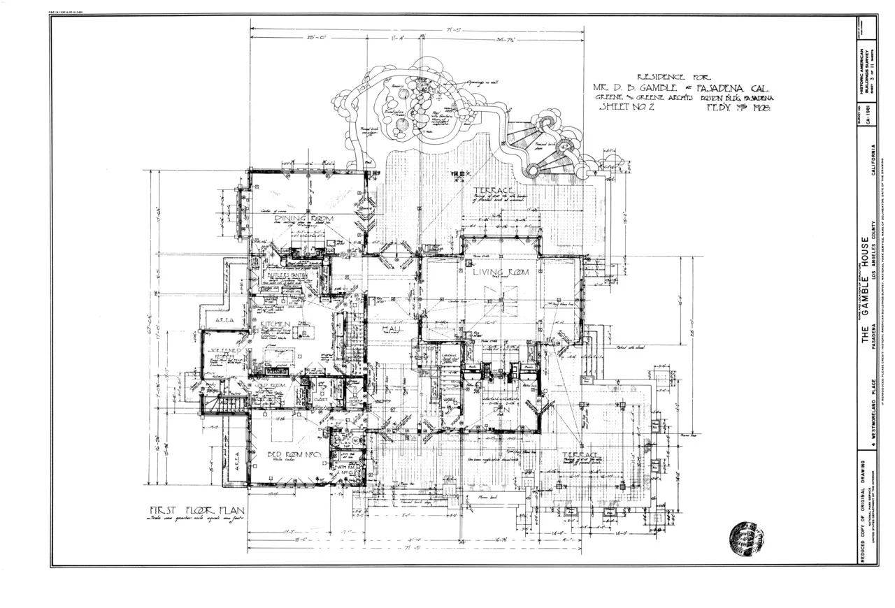 /May 13, 2011 by Thomas DeVoss olddoesnotmeanghetto: Photo Courtesy of Library of Congress First Floor Plan of Gamble House, Pasadena, California
