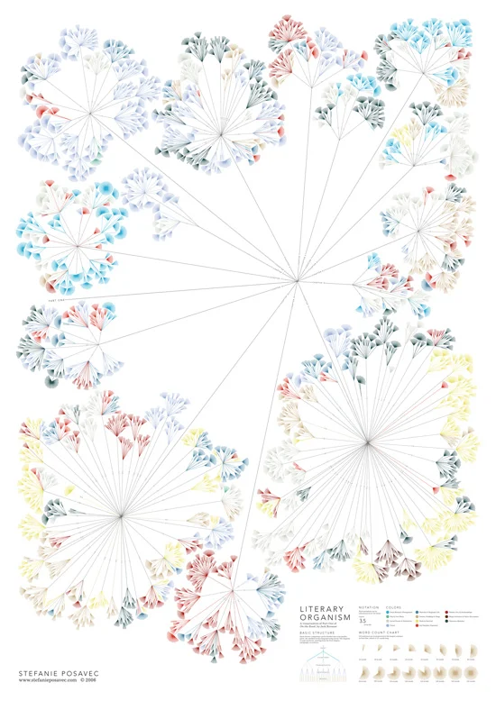 ‘Literary Organism’, a visualisation of the structure of Jack Kerouac’s “On The Road” by Stefanie Posavec (via Information Is Beautiful)