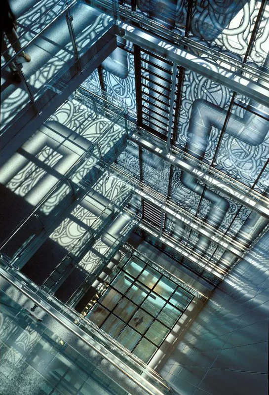 /January 23, 2012 by Thomas DeVoss subtilitas: Dominique Perrault - Printed glass atrium in the Innsbruck town hall renovation, Innsbruck 2004. Source: http://subtilitas.tumblr.com/post/15696540...