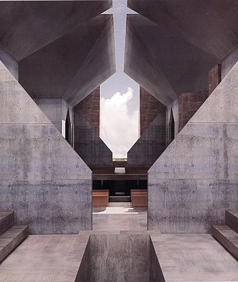 Louis Kahn’s unbuilt Hurva Synagogue, as rendered by Kent Larsen for the book Unbuilt Masterworks, a collection of digital constructions of Kahn’s proposals. Image via.