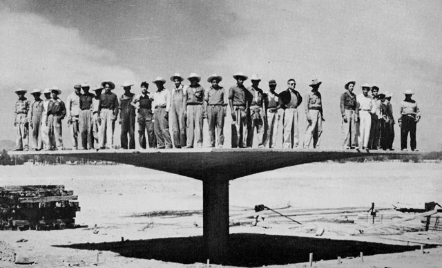 /January 5, 2012 by Thomas DeVoss subtilitas: Testing the structural integrity of Felix Candela’s hyberbolic-parabaloid concrete umbrella system, Mexico 1950’s. Via. Source: http://subtilitas.tumblr.com/post/14625038...