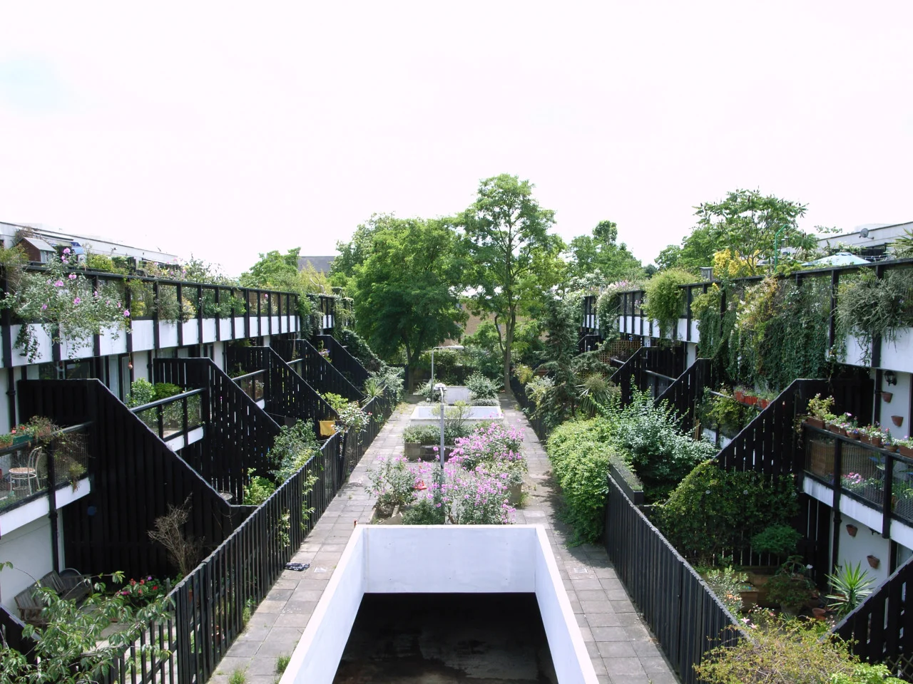 the grade-II listed dunboyne road estate, camden, by camden council architects department (neave brown). designed 1966, built 1971-77.