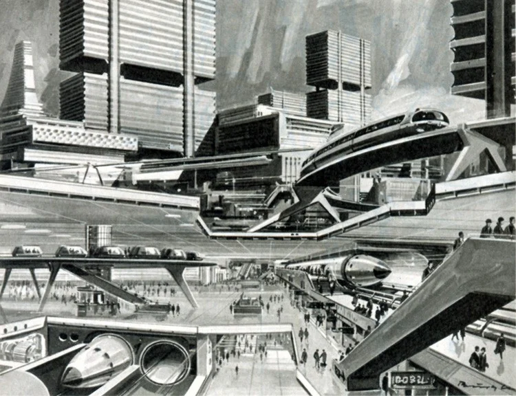 See that gleaming Metropolis on the horizon? - these majestic towers were something to aspire to, to dream about, to shape your life accordingly in an effort to reach it, and finally attain it as the ultimate reward… Such ideas were popular during the infant days of futurism in the 1920s, then in fantastic literature on both sides of the Atlantic during the Golden Age of Wonder in the 1930s, until finally, these grandiose visions fizzled out sometime in the 1980s together with the general decline of futurism.