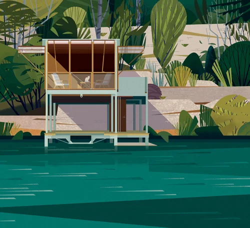 Creation of a series of 60 chapter opening illustrations for a new Architecture book published by Taschen, entitled Cabins.