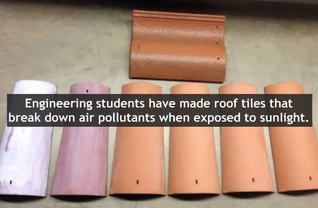 Titanium dioxide breaks down smog particles in the air, and students in the US have shown that in one year, one roof coated in it can break down the smog from a car that’s driven 17,000 km(10,500 miles). And every day, 21 tonnes of smog could be eliminated by one million treated roofs.