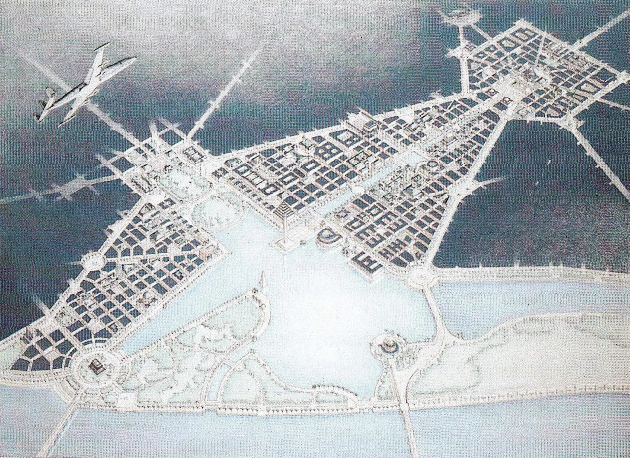 Masterplan of Auroville, a Utopian town founded in 1968 in Tamil Nadu, India, designed by architect Roger Anger.