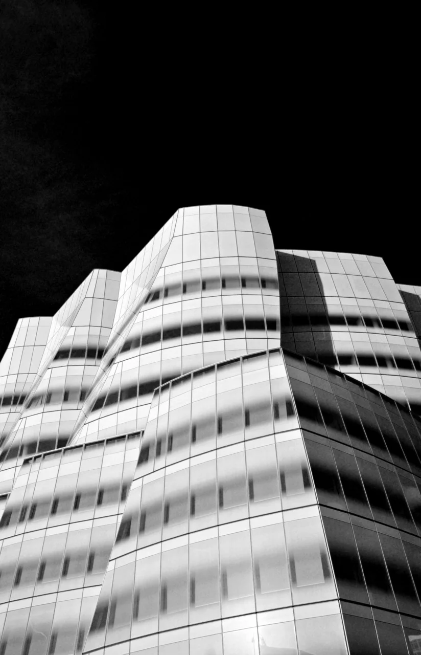 Description: An original black and white photo of mine of Frank Gehry’s IAC building in New York.