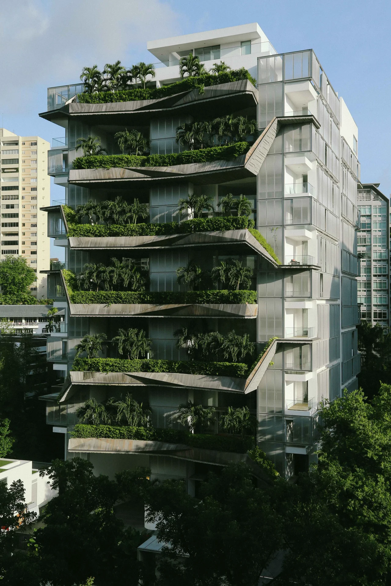 Walden 7 consists of a fourteen-storey cluster of 446 apartments, grouped around five courtyards, on top of which are two swimming pools. With few exceptions, each apartment face both outside of the block and into one of the courtyards, at many levels, there is a complex system of bridges and balconies for access producing a fantastic variety of vistas and enclosures.