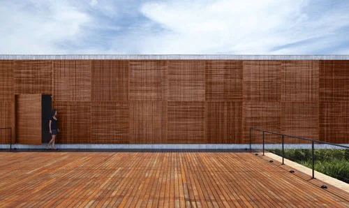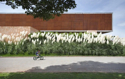 The exterior facade has the appearance of a huge fortification completely painted in red, which is opened to the exterior through large overtures like urban windows of several stories high. The courtyards have a lively treatment because of the intense blue and yellow colored facade. The main courtyard, at the building’s entrance, is a recovery of the street and the plaza for the benefit of the inhabitants, which generates an interior world apart from the exterior chaos.