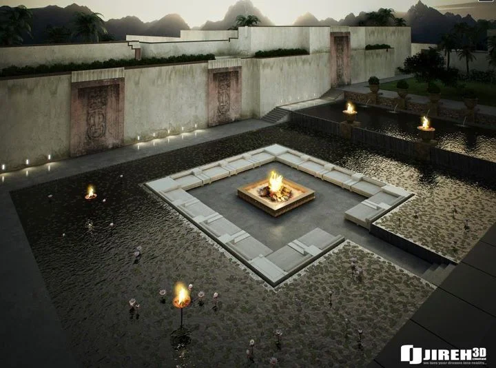 Sit between water and fire!