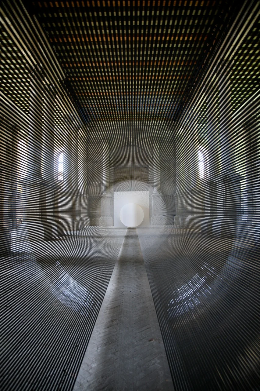 An 80-foot long walkway formed by stretched strips of old VHS magnetic tape.