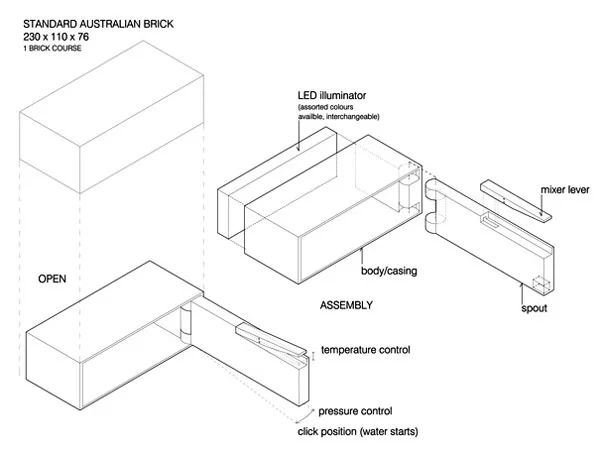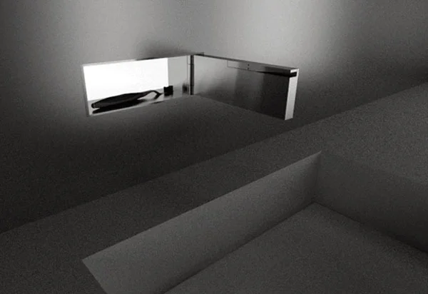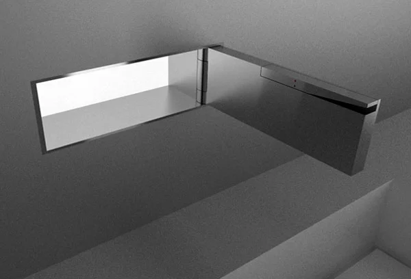 This incredible looking wall faucet comes from designer Andrew Tang-Smith and the idea is said to have been spotted in the popular Star-Trek movie series. Even though it has a futuristic feel, this faucet is as real as it gets. “Reveal/Conceal” is a wall embedded device with a multiple functionality. The sci-fi inspired project has a tiny led that acts a fun illuminating light. At a first glance it looks like an interesting wall add-on with no practical usage whatsoever. When opened, the faucet exposes a small apparently hidden storage zone which the user can use for placing small objects. We know the pictures are not entirely clarifying, which is why we added a few sketches. - via 3rings