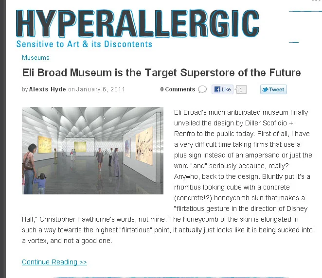 I wrote a piece for Hyperallergic about the unveiled design for the new Broad Museum downtown. Check it out!