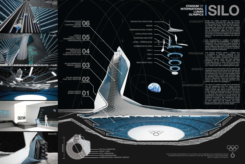Within the lunar colonies of the future, recreational activities will arise and evolve to take advantage of the moon’s micro-gravity. The sports we know today will be modified, and brand new sports will be invented. Lunar sports associations will be created, teams will be sponsored, games will be televised, and people from all over the globe will watch as the best of the best compete in an arena in which all the rules have changed. Welcome to the silo.